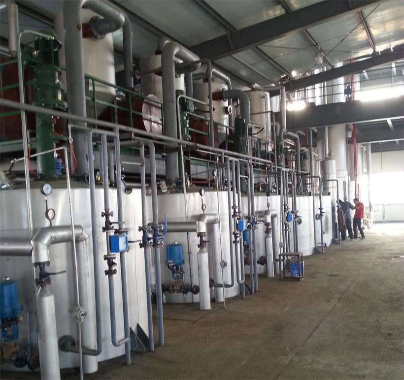 將反應(yīng)好的粗甲酯經(jīng)預(yù)熱器打入蒸餾系統(tǒng),本蒸餾系統(tǒng)采用三次蒸餾工藝,大大提高了油品質(zhì)量和得率,成品油的提取完全在高真空密閉系統(tǒng)中進行,本系統(tǒng)設(shè)備全部為不銹鋼304材質(zhì),所以在高溫下不會氧化,使產(chǎn)品的顏色得到最佳。